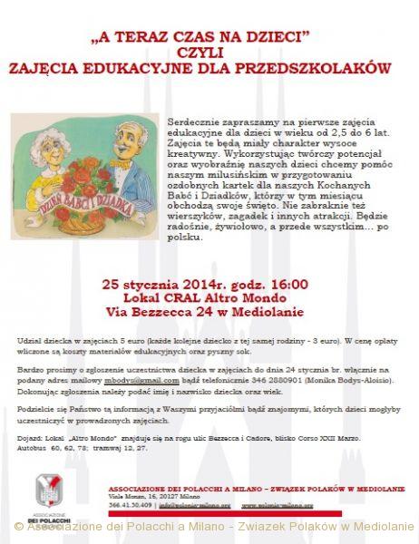 Non c’è nulla di più prezioso che un regalo preparato da un bambino con le proprie mani, fatto col cuore e tanta fatica. Non sono mancati neanche poesie e indovinelli. I bambini hanno partecipato e risposto con piacere a tutti i quesiti. Si sono divertiti anche a raccontare dei nonni, descrivendoli nei loro più svariati aspetti. I genitori hanno partecipato attivamente all’incontro, incitando e premiando il lavoro dei loro bimbi con fragorosi applausi. È stato un momento di gioia e allegria; e soprattutto… in polacco!