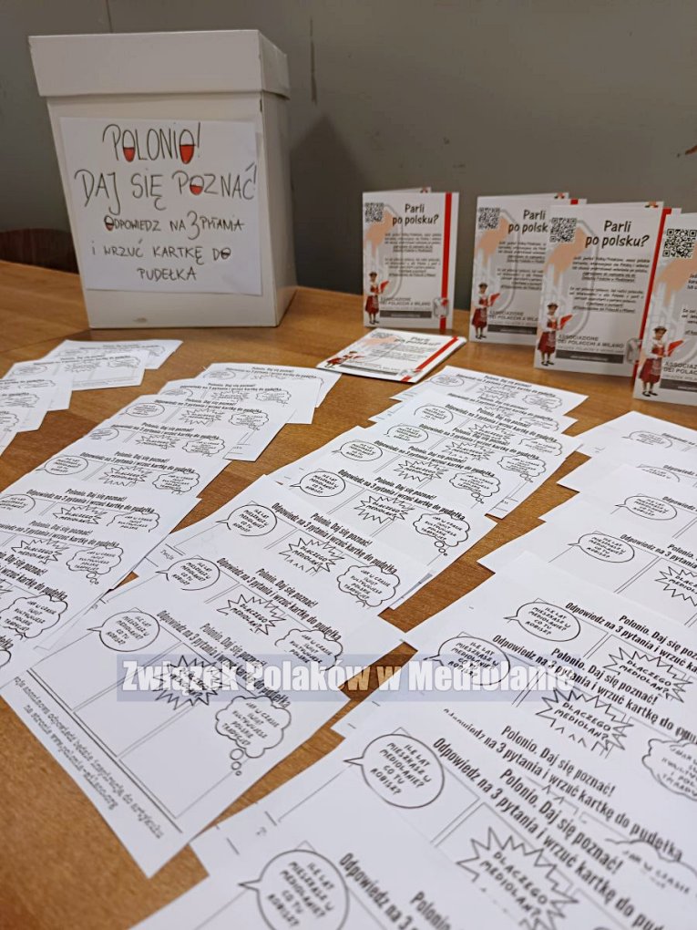 Przez cały czas trwania wydarzenia, na sali aktywnie działały przedstawicielki Związku Polaków w Mediolanie. Były one łatwo rozpoznawalne dzięki czerwonym koszulkom z logo stowarzyszenia, co ułatwiało kontakt. Chętnie odpowiadały na pytania gości, którzy mogli zapoznać się z ulotkami i dowiedzieć się więcej o kwestiach związanych z organizacją Związku, profilem działalności Ludoteki oraz możliwościami przystąpienia do stowarzyszenia.