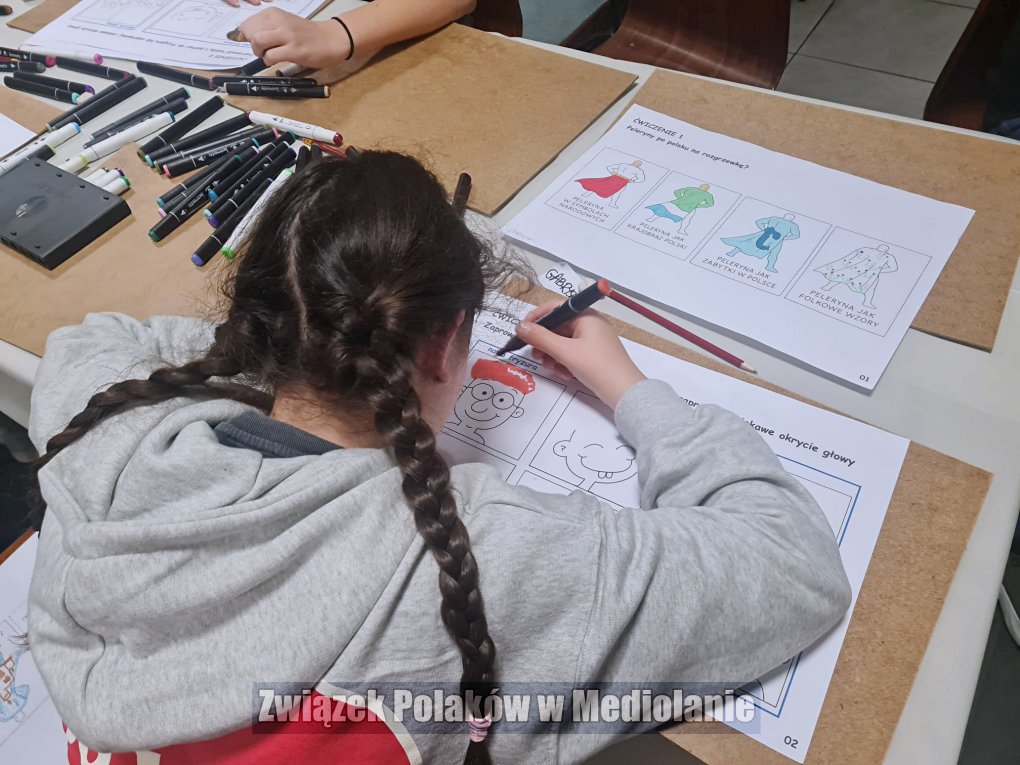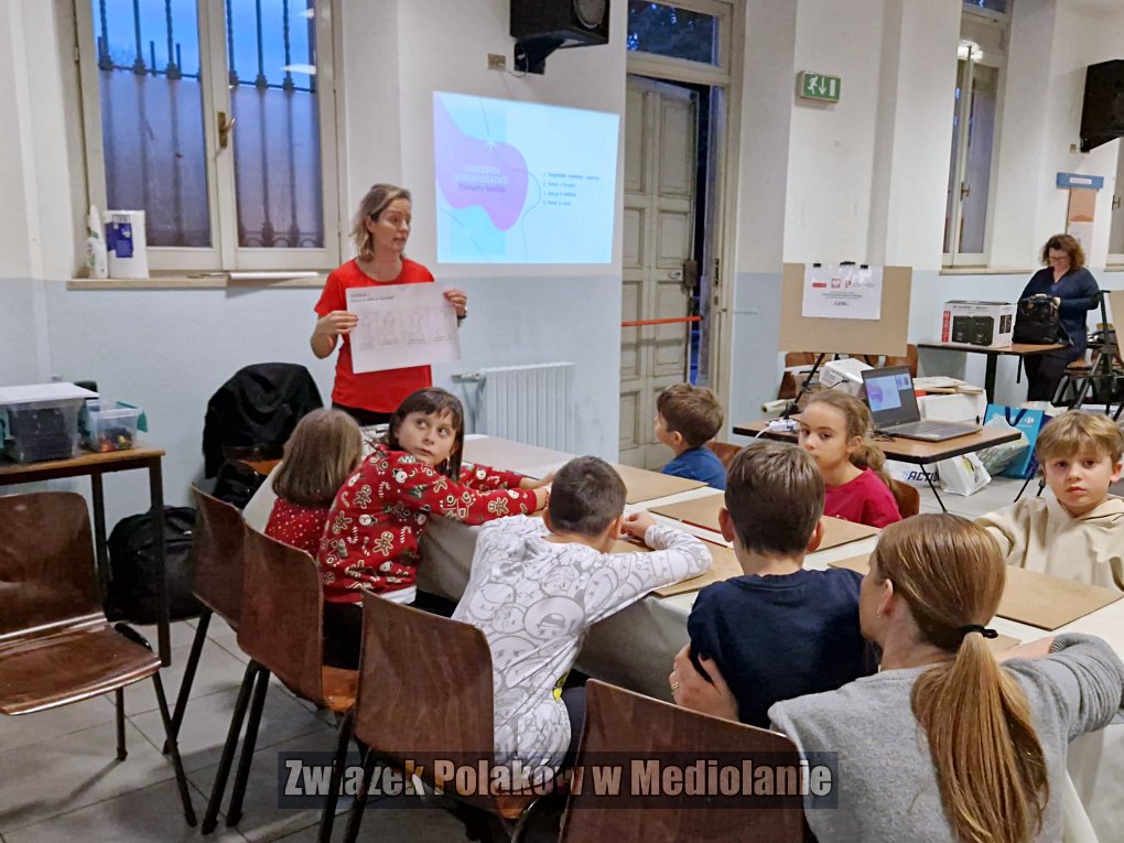 Pierwsza część wydarzenia zdecydowanie należała do najmłodszych. O godzinie 16:00 rozpoczęła się część warsztatowa dla dzieci przedszkolnych (3–6 lat) oraz szkolnych (7–14 lat). Już nie po raz pierwszy mediolański CRAL Comune di Milano przy via Bezzecca 24 stał się tętniącą życiem pracownią artystyczną nowego pokolenia, dzięki Marii Stępień oraz Agnieszce Kopeckiej. Tym razem prowadzące postawiły na bardzo nietypowy temat zajęć, czyli „Komiks po polsku”. Cele wydarzenia, takie jak rozpalanie kreatywności, wspieranie polszczyzny i promocja narodowej kultury – zostały zdecydowanie osiągnięte.