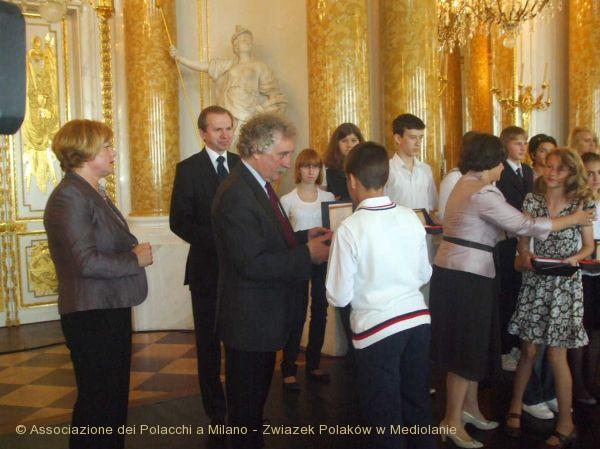 5 lipca 2011 r. w Sali Asamblowej Zamku Królewskiego w Warszawie odbyło się uroczyste zakończenie konkursu „Być Polakiem”. Galę rozpoczęto odśpiewaniem hymnu a następnie wicemarszałek Senatu RP Grażyna Sztark oraz prezes Stowarzyszenia „Wspólnota Polska” Longin Komołowski przekazali laureatom konkursu flagi polskie oraz wręczyli nagrody w postaci dyplomu, książek oraz „biletu” na dziesięciodniowy obóz w Poroninie. Pietro Casali, członek naszego Związku, został laureatem w kategorii prac multimedialych w grupie wiekowej 8-12 lat . Po wręczeniu nagród zaprezentowano fragmenty niektórych prac konkursowych. Spotkanie na Zamku zakończył przepiękny program artystyczny zatytułowany „Pod znakiem orła – w bieli i czerwieni…” wykonany przez Zespół Artystyczny Kompanii Honorowej Wojska Polskiego. Młodzi Polonusy zwiedzili także Sejm, Starówkę, Muzeum Powstania Warszawskiego, Wilanów oraz odwiedzili Centrum Nauki Kopernik. Od 8 do 18 lipca dzieci przebywały na obozie w Poroninie. Zorganizowane zostały także wycieczki do Zakopanego , Oświęcimia i Krakowa.