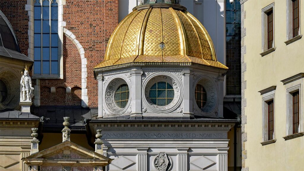 Kaplica Zygmuntowska, będąca mauzoleum rodowym Jagiellonów, została zaprojektowana ściśle na wzór kaplic grobowych włoskiego renesansu. Jej plan centralny opiera się na kwadracie przykrytym kopułą, co stanowiło kwintesencję renesansowego dążenia do harmonii, symetrii i ideału centralnej budowli – koncepcji rozwiniętej przez włoskich mistrzów, takich jak Bramante. W zakresie detalu i materiału Kaplica czerpie wyłącznie z włoskich inspiracji. Ściany pokrywa boniowanie i bogata kamieniarka, a wnętrze zdobią wykonane z piaskowca i czerwonego marmuru nagrobki królewskie, pełne klasycznych renesansowych motywów, takich jak łuki i pilastry. Bezpośrednio ze sztuką włoską łączył ją układ przestrzenny, podziały ścian i bogata dekoracja wnętrza. Centralny rzut kaplicy realizował teoretyczne postulaty włoskich architektów Renesansu, którzy wskazywali tego typu plan jako najbliższy doskonałości. W epoce renesansu artyści włoscy odwoływali się do tekstów starożytnego, rzymskiego architekta Witruwiusza, który utrzymywał, że w obie figury można wpisać ciało człowieka, co świadczyło o doskonałości jego proporcji.