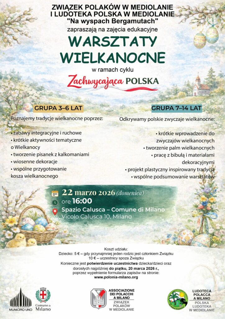 Związek Polaków w Mediolanie i Ludoteka Polska w Mediolanie “Na wyspach Bergamutach” mają przyjemność zaprosić dzieci w wieku 3 – 14 lat wraz z rodzicami na: